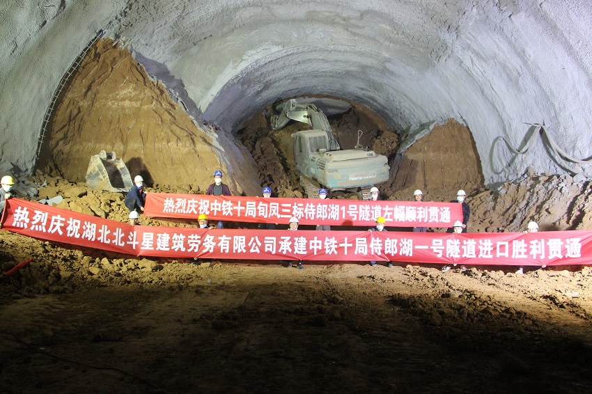 4月25日,由旬鳳韓黃公司投資建設的土建3標侍郎湖1號隧道左幅順利貫通,比原計劃提前3天。至此,侍郎湖1號隧道左右幅實現全幅貫通,屬于項目全線第三座全幅貫通的隧道。