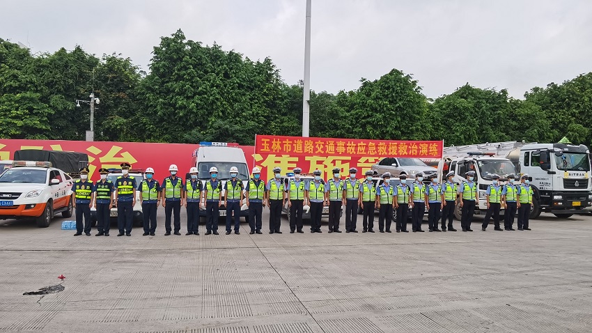 此次演練活動,共出動路政巡查車4輛、警車8輛、消防車12輛、120急救車1輛、養(yǎng)護車1輛,施救車1輛、救援人員共130余人。