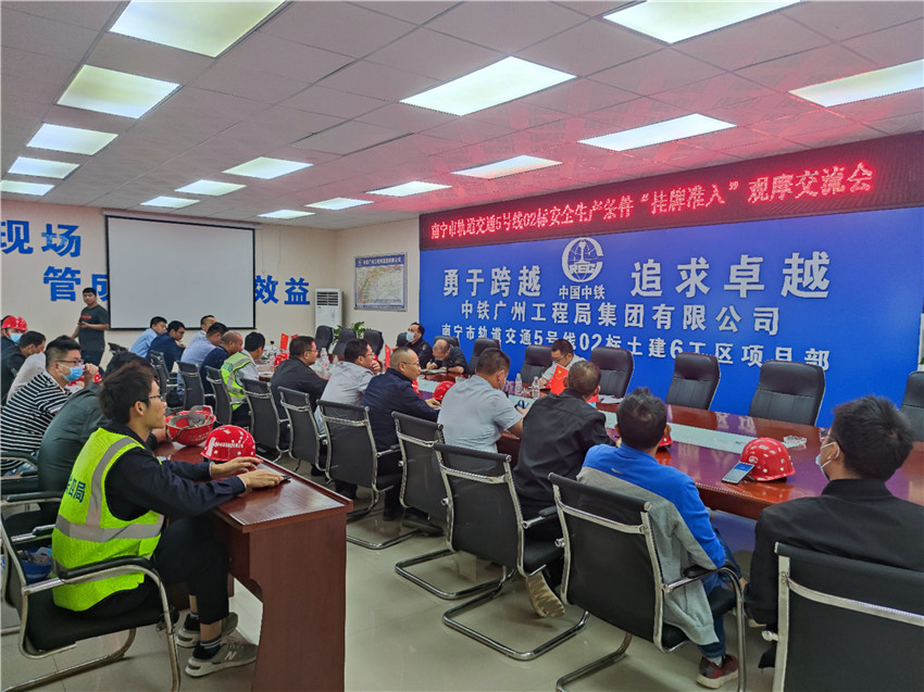 10月9日,南寧地鐵5號線02標指揮部在6工區新秀公園站開展安全生產條件“掛牌準入制”觀摩交流活動,指揮部業務部門人員及各工區經理、安全總監、安質部長參加。