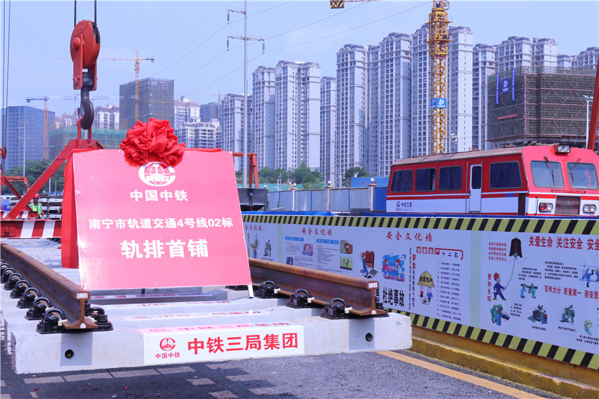 ▲南寧地鐵4號線鋪軌首排