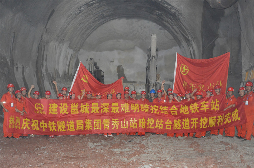 ▲南寧地鐵3號線青秀山站暗挖站臺隧道順利完成開挖