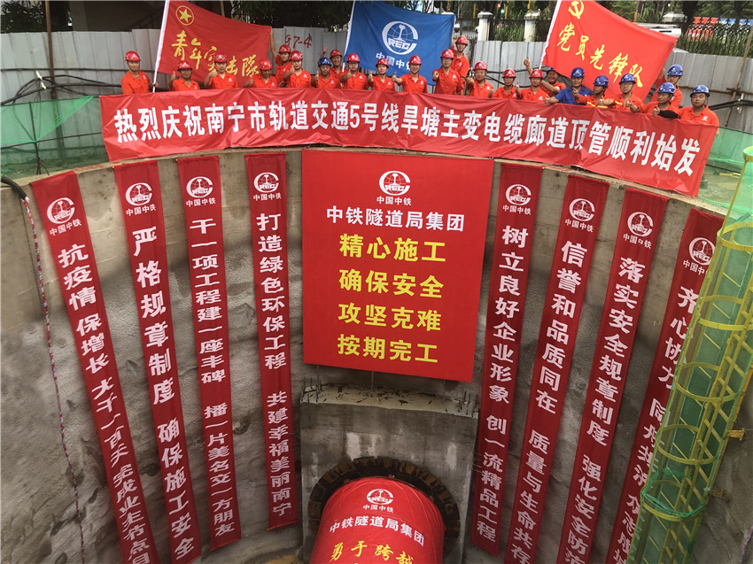 ▲南寧地鐵5號線旱塘主變電纜廊道頂管順利始發