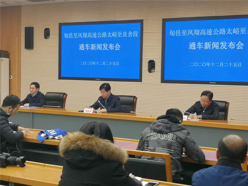 上午9時,陜西省交通運輸廳召開“旬邑至鳳翔高速公路太峪至良舍段”新聞發布會。發布會上,陜西省交通運輸廳黨組成員、副廳長黨延兵從項目建設概況、項目通車的重要意義、下一步工作計劃三方面介紹了旬邑至鳳翔高速公路工程項目情況,新華網、人民網、中國交通報、陜西交通報等15家新聞媒體現場參加發布會,陜西旬鳳高速公路有限公司相關負責人在現場答記者問。
