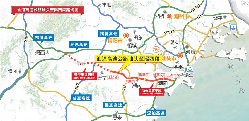 據悉,廣東汕湛高速公路(汕頭至揭西段)主線全線長約87公里,路線橫貫汕頭揭陽兩市、直通珠三角。汕頭至揭西段作為廣東汕湛高速公路的起點段,將成為快速聯通粵東地區與粵港澳大灣區、貫通沿海經濟帶的交通大動脈,進一步完善粵東高速公路網絡,極大縮短道路沿線與大灣區的時空距離,從廣東汕湛高速公路起點汕頭南收費站往廣州市區理論上行車時間僅需3.5小時,對方便沿線百姓出行、促進沿線地方經濟發展具有重要意義。