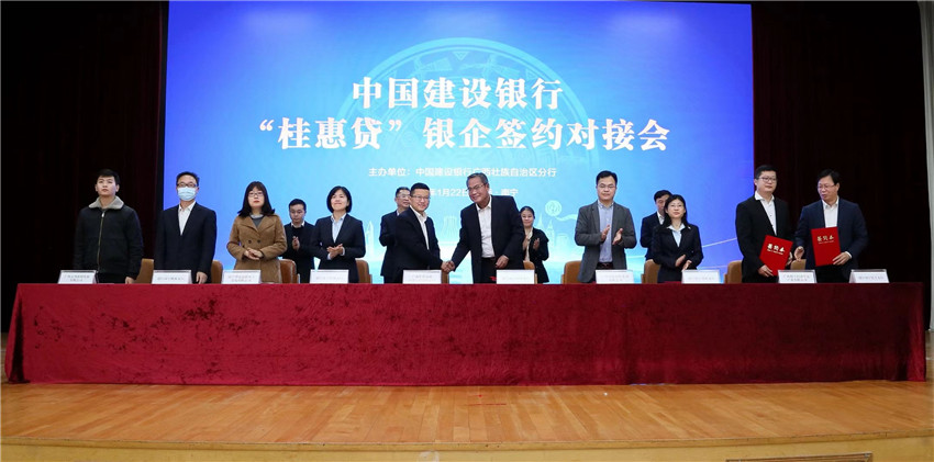 1月20日,南橫項目參加中國建設(shè)銀行“桂惠貸”銀企簽約對接會。會上,南橫項目黨工委書記、董事長與中國建設(shè)銀行南寧江南支行行長簽約。