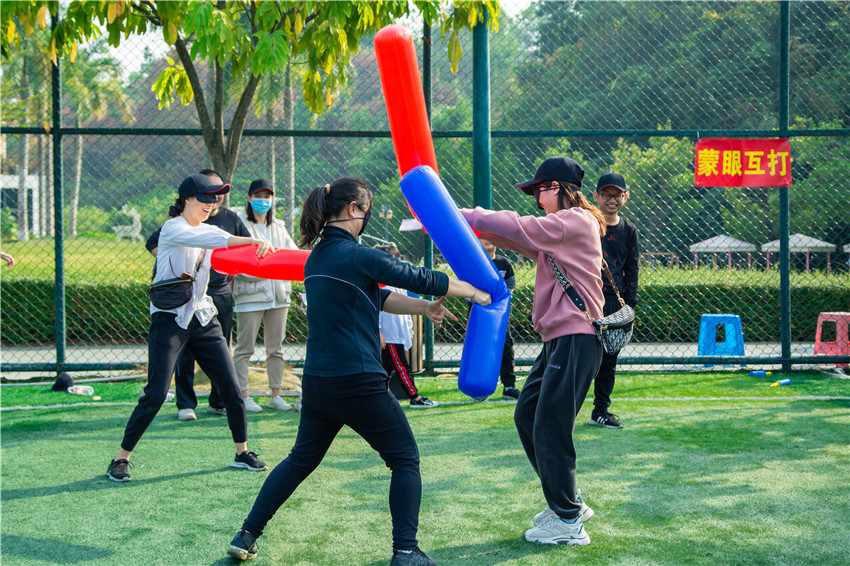 團體運動會結(jié)束后,職工及家屬還參加了投壺、抖球、沙包投擲、蒙眼互打、光盤拔河等趣味游園活動。