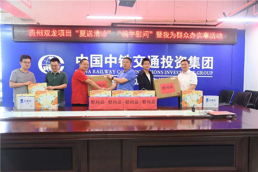 6月8日,貴州雙龍項目組織開展了“夏送清涼•端午慰問”暨“我為群眾辦實事”主題活動。集團公司副總經(jīng)理劉進友為貴州雙龍項目職工送上了慰問品,并要求項目公司積極落實好防暑降溫各項舉措,確?;鶎右痪€職工在安全生產(chǎn)作業(yè)時,防止高溫中暑。