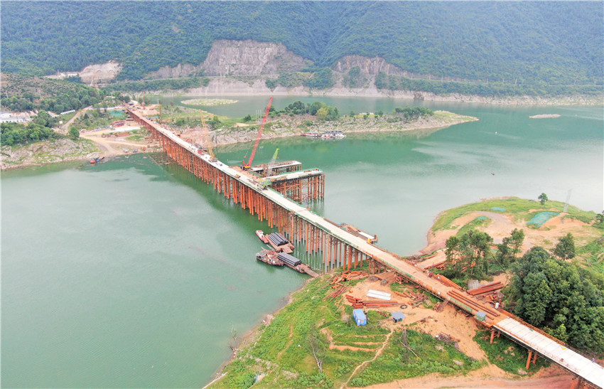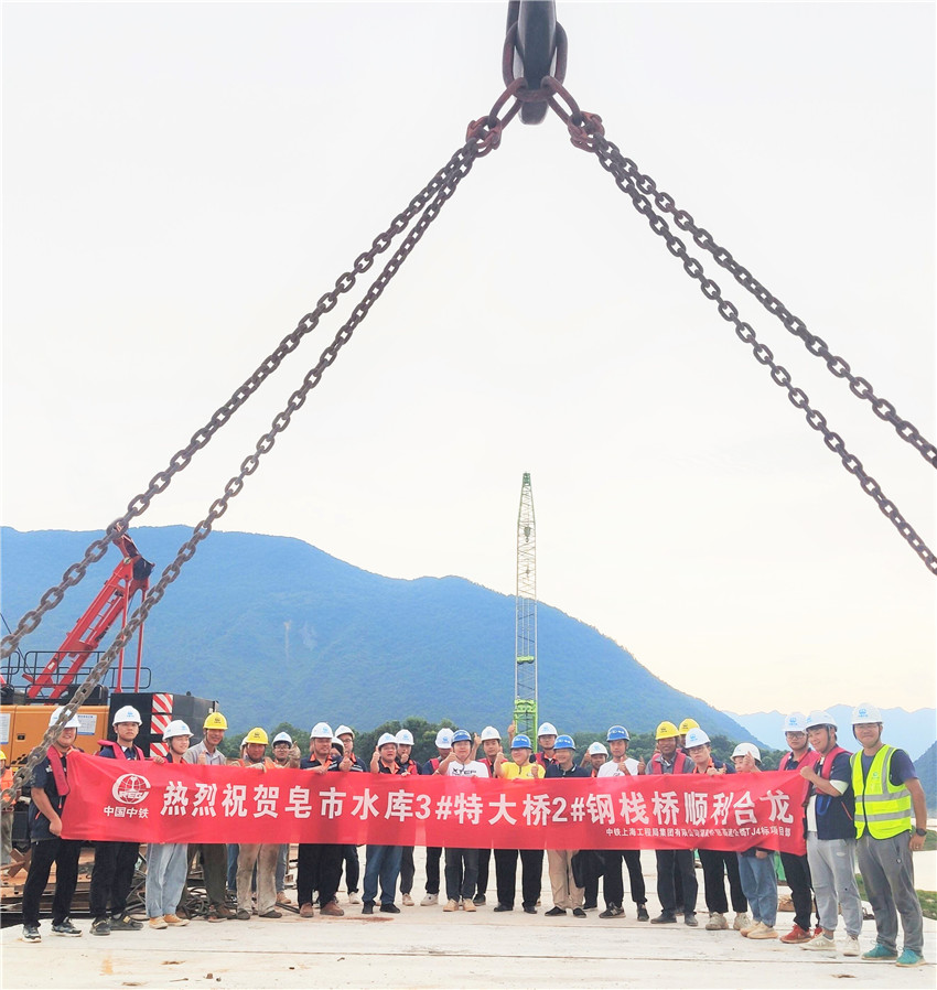 7月16日下午17時,隨著最后一塊鋼筋混凝土預(yù)制板鋪設(shè)完成,爐慈高速公路項(xiàng)目皂市水庫3#特大橋2#鋼棧橋順利合龍,標(biāo)志著3#特大橋施工建設(shè)即將全面啟動。