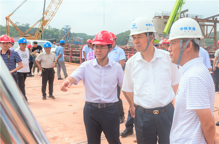 廣西壯族自治區(qū)政協(xié)副主席錢學(xué)明到項(xiàng)目控制性工程魯塘江大橋施工現(xiàn)場(chǎng),詳細(xì)了解魯塘江大橋的工程概況、施工進(jìn)度、施工重難點(diǎn)、施工管理亮點(diǎn)等情況,并在項(xiàng)目公司駐地組織召開了專題座談會(huì),進(jìn)一步統(tǒng)一了項(xiàng)目推進(jìn)相關(guān)意見。