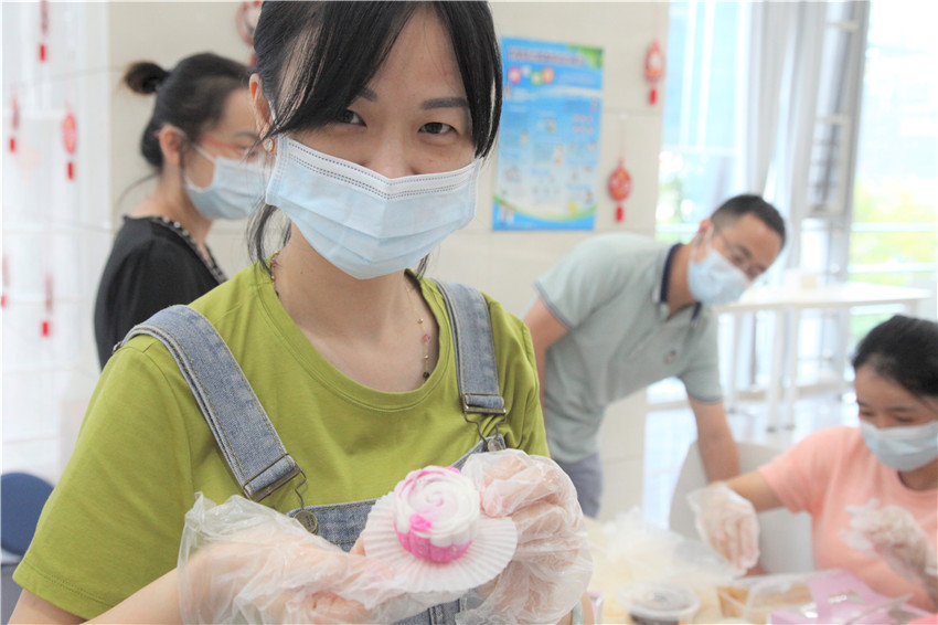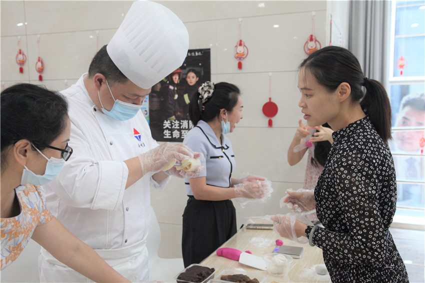 參加活動人員在專業(yè)烘焙老師的講解示范下,相互探討打月餅皮、揉餡、包月餅等環(huán)節(jié),積極動手揉面、搟皮、包餡、整形,充分體驗到了制作月餅的快樂過程,呈現(xiàn)出了溫馨、和諧、團(tuán)圓的喜慶氛圍。