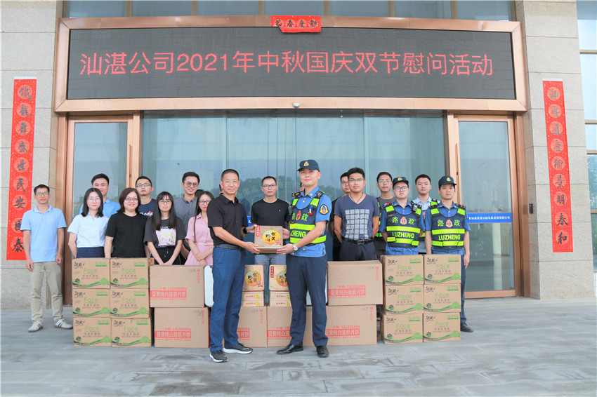 9月16日,汕湛公司組織開展了2021年中秋國慶“雙節(jié)”慰問活動,公司領(lǐng)導(dǎo)班子成員為職工送上了月餅等慰問品,并向公司職工送上了節(jié)日祝福,叮囑全體干部職工要嚴(yán)格遵守疫情防控各項規(guī)定,勿忘廉潔自律,堅守“底線”,不碰“紅線”。