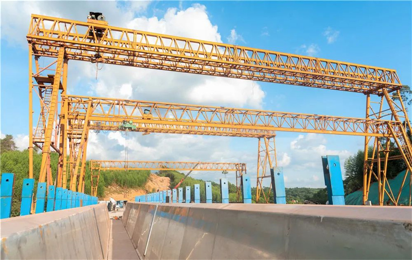 截至10月底,南橫項(xiàng)目預(yù)制梁場(chǎng)總面積約246731㎡,已預(yù)制41片箱梁,配置20臺(tái)提梁門吊,占總數(shù)57%;存梁臺(tái)座90個(gè),占總數(shù)42%;制梁臺(tái)座199個(gè),占總數(shù)65%;配32套箱梁模板,占總數(shù)42%。