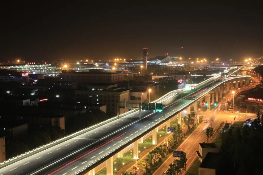 ▲燈光璀璨奪目、立體感強的長沙機場大道