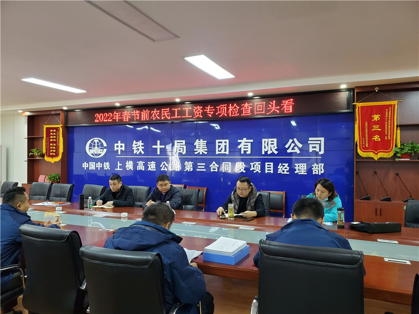 上橫指揮部對各合同段施工現(xiàn)場開展節(jié)前安全大檢查,并進行農(nóng)民工工資支付專項檢查,督導施工單位做好春節(jié)期間疫情防控和安全施工建設,并及時足額發(fā)放農(nóng)民工工資,維護農(nóng)民工合法權(quán)益,確保春節(jié)期間企業(yè)安全和諧穩(wěn)定。